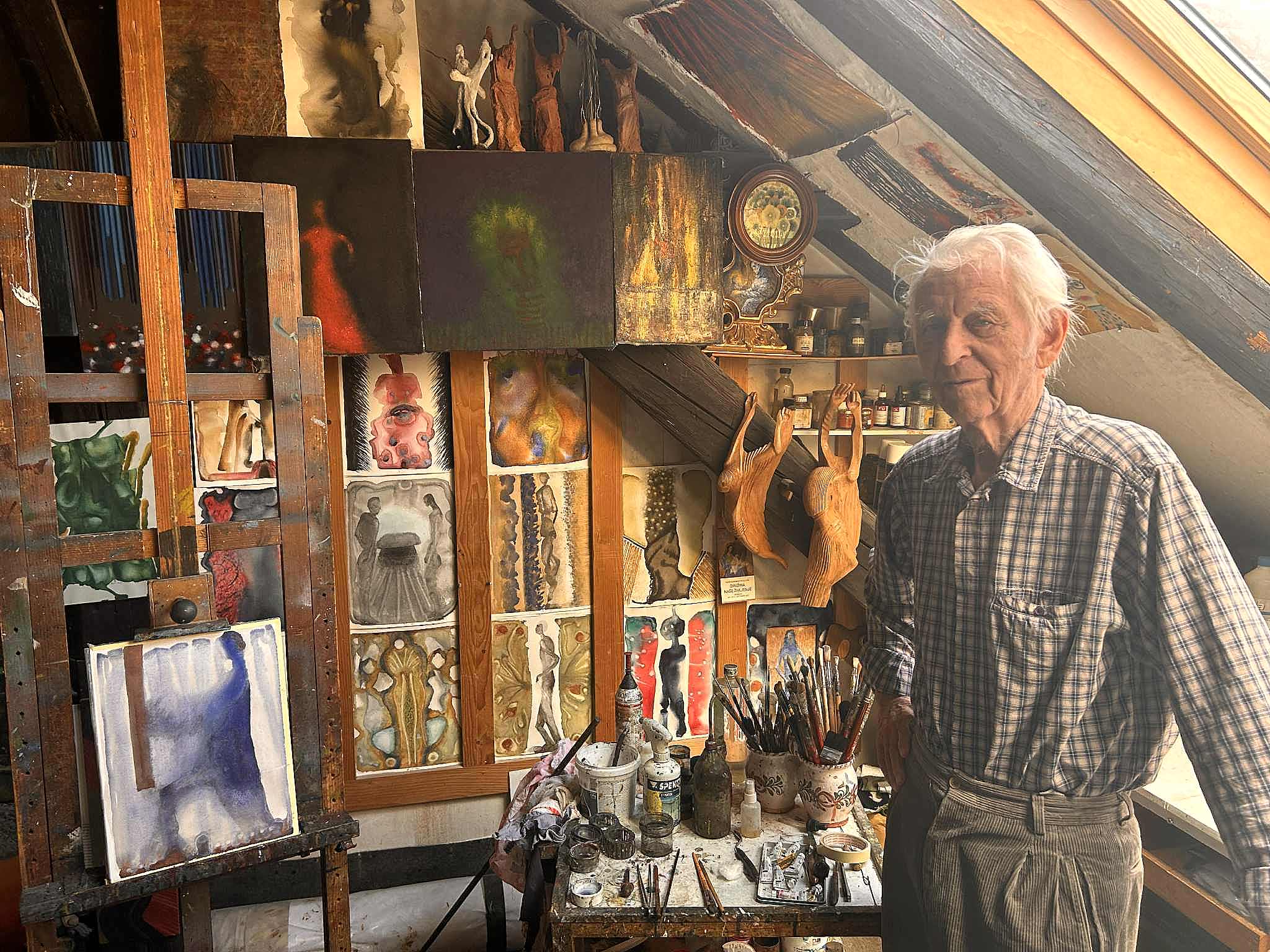 Ta občutljivost in liričnost sta ostali prepoznavni značilnosti njegovega ustvarjanja tudi v kasnejših desetletjih. Pol stoletja pozneje figura ostaja, a v drugačni obliki. V umetnikovih najnovejših akvarelih je človek le še silhueta, zamegljen privid. Iz barvnih lazur vznikajo črne postave, ki se pogrezajo v prosojne plasti in delujejo kot bežni odmevi preteklosti. Ta zabrisanost nosi v sebi slutnjo minljivosti.